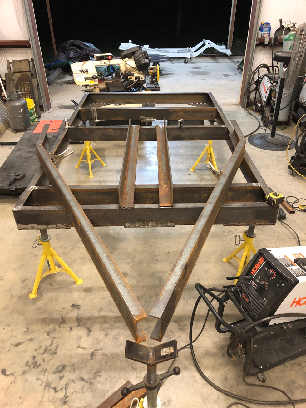 With the frame completely finished the next step is to weld on the tongue of the trailer and attach the hitch that we previously purchased. After ensuring the welds are capable of withstanding an immense amount of weight we will flip the trailer back over to its normal position. Once we have it up we need to purchase axles, tires, and a jack stand so we can attach them to the frame making the trailer able to hold itself in position. We plan to buy the materials in the next week so we can accomplish our goal of completing the entire bottom half of the trailer. After that we need to build the dump bed frame, attach the hydraulic piston to the trailer and bed frame, and complete the project with electric components and a paint job. Once we finish the main frame of the trailer the remaining steps should go by quickly so that we can complete our project in a timely manner.
